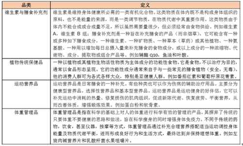 保健品主要分为四大类别:维生素与膳食补充剂、植物传统保健品、运 动营养品以及体重管理产品。广义的运动营养品包括运动食品与补充剂 (以增肌蛋白粉、肌酸等为主,全球超过 100 亿美元规模)和运动与功 能饮料(红牛、Monster、佳得乐等,全球 500 亿美元规模,目前市场 已趋于饱和),这里主要指狭义的概念,即为运动食品和补充剂。体 重管理产品主要包括瘦身膳食替代品、瘦身茶、瘦身补充剂等减肥产品。