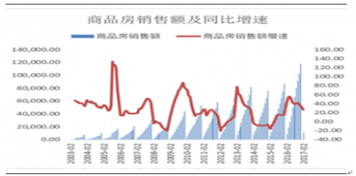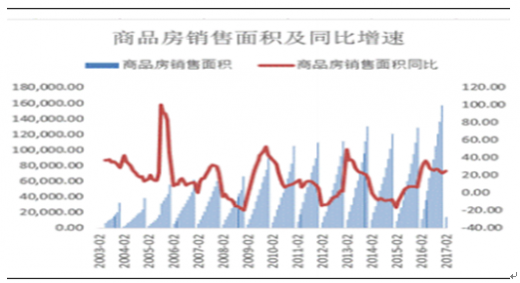 2003年2月-2017年2月中国商品房销售面积及同比增速