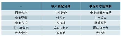 其一为双胞胎模式:以中大猪配合料为核心产品,面向中小散户,比拼产品性价比,核心是成本控制力。